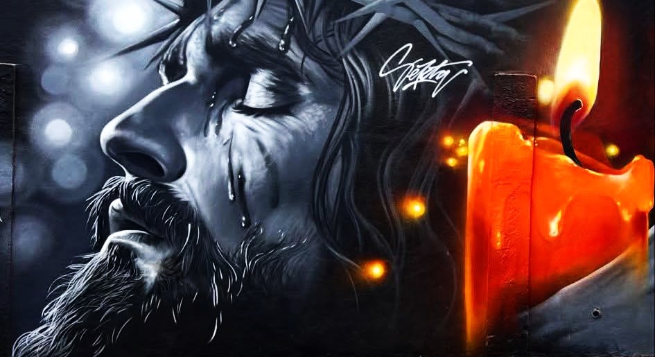 Les street artistes s’inscrivent dans le droit fil d’une tradition de la peinture religieuse mais, en variant la focale, à la manière des photographes, illustrent la souffrance de l’homme-dieu.