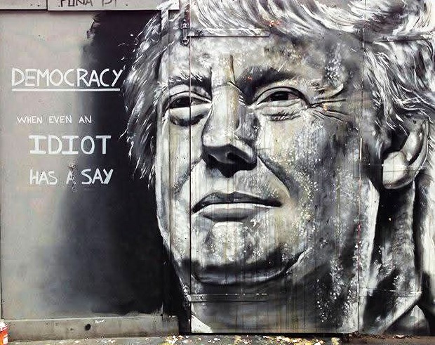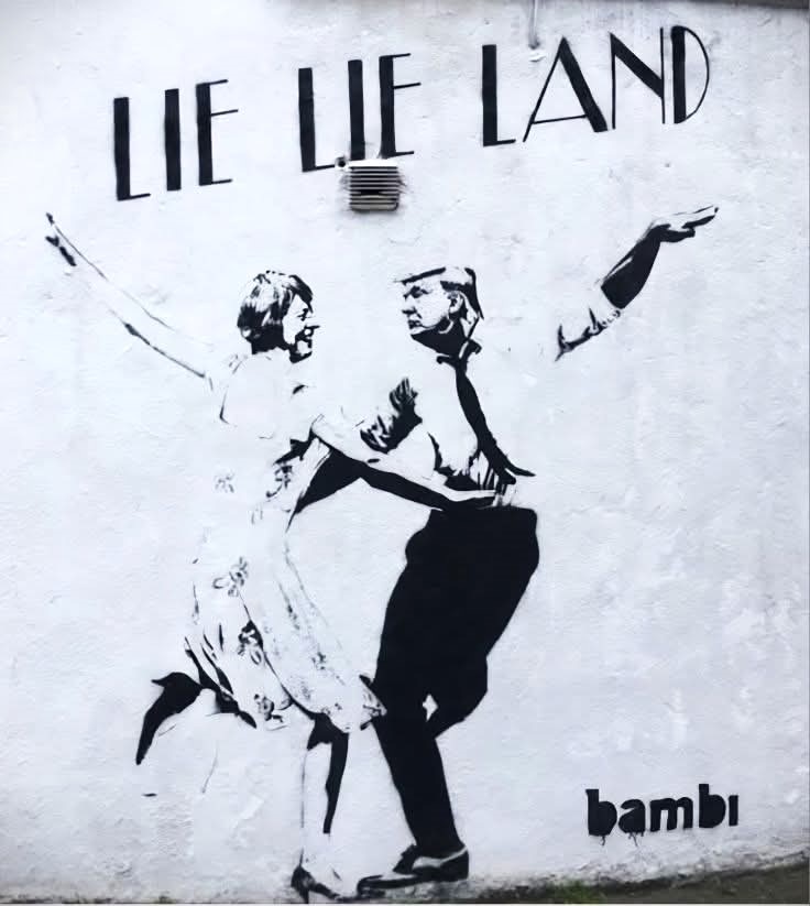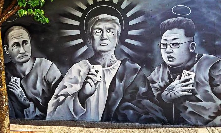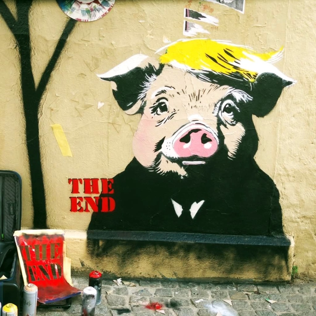 Je laisse bien volontiers aux spécialistes du discours politique la lourde tache de l’examen des arguments des adversaires de Trump, je préfère restreindre ma réflexion aux images, photographies des fresques de street art mais aussi aux images créées par l’intelligence artificielle, plus précisément à celles (et elles sont légion !) qui ont explicitement l’objectif de se moquer de Trump.