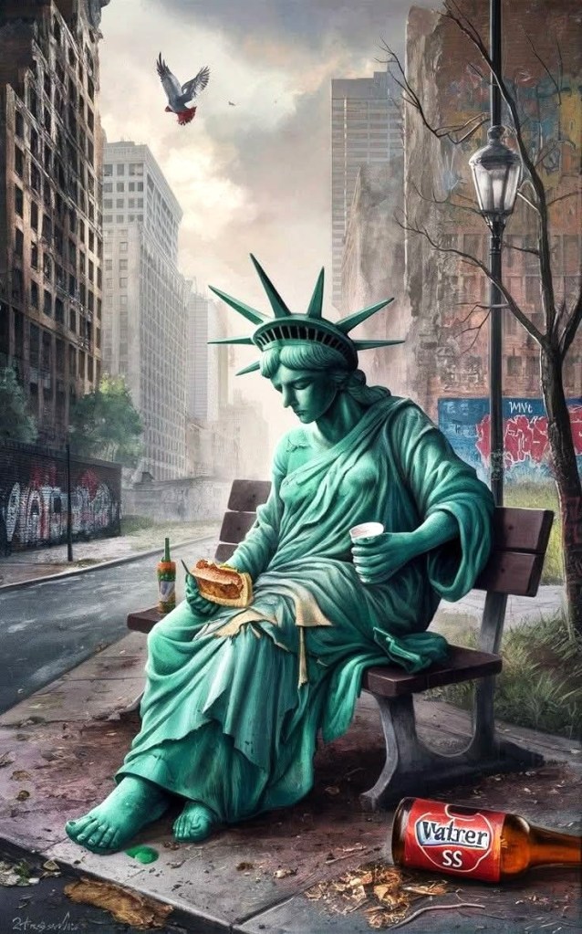 Le sentiment des artistes est fort. Il est traduit par des postures de désespoir. C’est littéralement une catastrophe qui menace, non seulement l’économie du pays, mais son existence. Un pays qui est sur le point d’accoucher d’une autre société, une société qui bafoue toutes les valeurs qu’incarne Lady Liberty, les valeurs des Pères fondateurs.