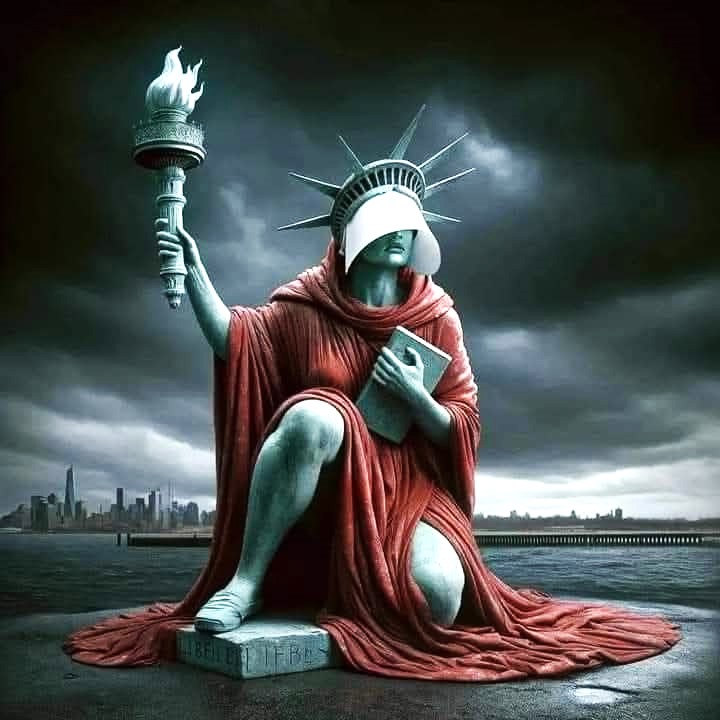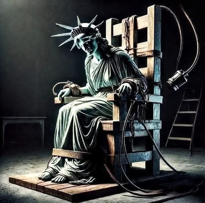 Tout d’abord, elles disent la douleur et la souffrance. Lady Liberty pleure devant le désastre d’une Amérique inféodée au Kremlin. Elle est prisonnière dans son pays, malade. Plus gravement, elle est menacée d’une exécution capitale.